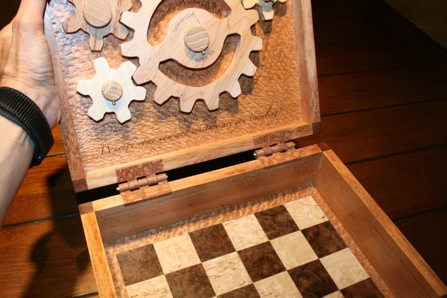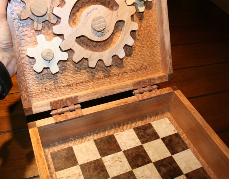 I once bought a book as a gift that needed "wrapping" worthy of the antique leather-bound tome. The book was a travelogue written by a group of American Freemasons that had traveled to the Holy lands. Well, the subject matter was obvious and as I was new to woodworking, a presentation box seemed like a good idea. I dreamt of sourcing beautiful woods, masonic iconography, maybe even a hidden puzzle only the learned could solve? Sure, why not. I'd never made a box before, but it would be fun. 14 months later, my second attempt was presented to my brother-in-law at a lodge meeting, complete with personalized marquetry, wood hinges, a puzzle and hidden compartment with Masonic symbols meaningful to the recipient. It was a great learning experience!